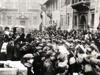 Keywords: Italiani a Trento.jpg it Truppe italiane entrano a Trento il 3 novembre 1918 al termine della Prima guerra mondiale scan da P P Cervone Vittorio Veneto l'ultima battaglia 2009 author 1918-11-03 PD-old-70 Anonymous-EU Battle of Vittorio Veneto Italian Front theatre of World War I History of Trento |