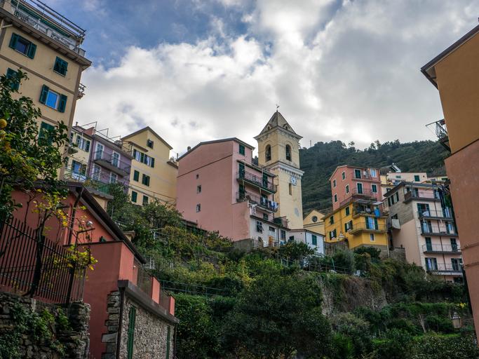 Keywords: italy cinque terre mediterranean europe coast tourism italian picturesque scenic riomaggiare landscape travel nature view scenery hill green summer outdoor architecture famous town sky clouds