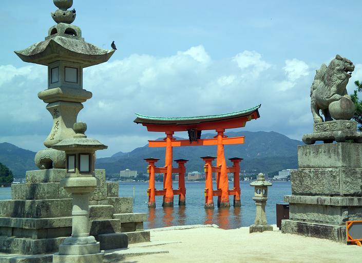 Keywords: ItsukushimaTorii7398.jpg Torii at Itsukushima Shrine Miyajima Hiroshima Prefecture Japan I took the photo 2005-08-07 own assumed Fg2 Itsukushima-jinja torii Stone lanterns in Japan