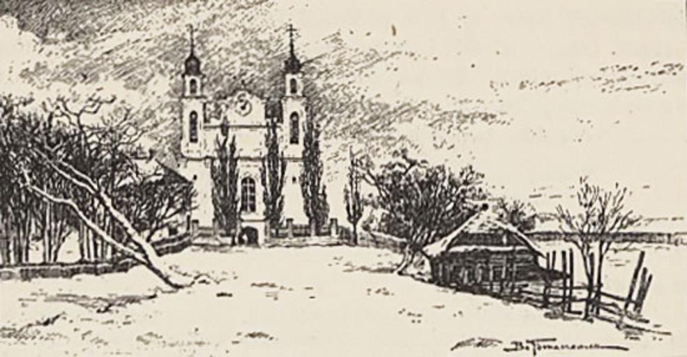 Keywords: Iŭje, Kaścielnaja. Іўе, Касьцельная (1898).jpg Іўе вуліца Касьцельная Jankowski Czesław Powiat oszmiański materjały do dziejów ziemi i ludzi Cz 4 1898 author 1898 PD-old History of Iŭje Church of Saints Peter and Paul in Iŭje