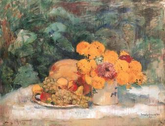 Keywords: Iványi Still Life in the Open Air 1931.jpg Artwork Creator Béla Iványi-Grünwald 1931 Oil on canvas Size cm 80 60 Institution Rippl-Rónai Museum Kaposvár object history credit line accession number 60 16 Horváth János szerk A Rippl-Rónai Ödön Gyűjtemény Kaposvár 2002 ISBN 963 7212 32 9 p 129 http //muzeum arcanum hu/kiadvanyok/opt/a110625 htm v pdf a start_f Magyar Digitális Múzeumi Könyvtár PD-old-70 Paintings by Béla Iványi-Grünwald in the Rippl-Rónai Museum Kaposvár 1931 paintings in Hungary Still life paintings in the Rippl-Rónai Museum Kaposvár Still life paintings by Béla Iványi-Grünwald |