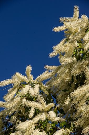 Keywords: ivory curl tree buckinghamia celsissima flowers blossom white tree summer garden blue sky evergreen