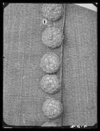 Keywords: Jacka av grå kamlott. Tillhört Karl X Gustav (1622-1660) - Livrustkammaren - 70981.tif LSH artwork sv Denna dräkt består av jacka byxor och kanoner av grå kamlott d'Hollande Materialet är gråbrun yllekamlott med en vådbredd av 77 cm utan stad 20x8 5 tr/cm2 Varpen består av 1ljus och 1 mörk tråd som tvinnats åt höger tillsammans och inslaget består av 3 ljusa otvinnade trådar Staden utgörs av enbart 2 vita trådar Jackan som till sin form mycket påminner om jackan till dräkt nr 3419 är sydd av 4 storastycken som vidgats i sidorna och rundats i kanten Den har ca 37 cm öppna skört i sidornaoch bak Jackan har sytts ihop med korta sidosömmar och mitt bak endast till midjan Ärmarna består av 2 stycken och har öppna framsömmar Jackan är mitt fram 69 cm lång ståndkragen oräknad denna är 5 cm hög mitt fram och mitt bak 3 5 cm Mitt bak är jackan 73cm lång utan krage Den har sytts så att dess korta sidosömmar sömmen mitt bak ochaxelsömmarna sytts samman från baksidan Ärmarna har sytts ihop så att överstyckena ligger ovanpå de undre i den utsvängda baksömmenoch ärmarna har sedan trätts genom ärmhålet Endast den lilla korta framsömmen 15 cmlång nedanför det ca 35 cm långa sprundet har sytts ihop från baksidan I baksömmen påärmen är den nedre - raka - delen ca 15 cm lång öppen för att kunna bilda uppslag och harhär försetts med en skoning av brun rips Jackan verkar ej ha haft något mellanfoder men iärmuppslagen sitter papper mellan fodret och tyget Detta utgör styvnad för denursprungliga fastsydda garneringen av silverspets ty täta hål efter stygn visar att mansytt genom pappret det har varit en ca 9 cm bred spetsbesättning Jackan är fodrad medsilvermoiré med en vådbredd av 49 cm utan stad 64x14 tr/cm2 Varp och inslag är av vittotvinnat silke I varje inslag ligger på rätan en silverlan Stad 0 7 cm 6 gröna 6 gula 6 gröna 6 gula 6 gröna trådar samt 1 tjock vit - ripsbindning Mitt i tyget syns en randefter vattringen Jackans foder är skuret på samma sätt som tyget i övrigt dock har man omedelbart ovanförsidoskörtets öppning satt in 2 horisontella kilar för att göra plagget mindre åtstramande De är något varierande i storlek och placering men ca 1 cm långa Fram har jackan en helobruten rad av knapphål på vänster sida vilket ju icke är fallet med jackan nr 23 Det ärinalles 29 knapphål 3 5 cm långa och sydda med brunt högertvinnat silke över silkestråd 8stygn/cm På höger sida sitter utefter hela kanten 28 st d 2 cm knappar av vilka dockendast de 17 översta kunnat begagnas eftersom fodret täcker de följande På vänsterframstycke finns i sidokanten 15 knappar och på höger framstyckes sidokant 16 st svarandemot de 16 knapphål som sitter i sidostyckena och baksprundet Inte någon knapp i sprundenmitt bak eller i sidorna har kunnat knäppas ty fodret har hela vägen sytts över hålen Baktill finns på vänster stycke endast 13 knappar kvar På vänster ärms överstycke sitterav knappgarneringen endast 8 knappar kvar på höger ärm finns 14 knappar kvar Ärmarnasbakstycken har vardera 16 knapphål Ärmuppslagen har skoning av brun rips på kamlotten Kragen som är försedd med styvnad av fiskben instoppade i oblekt linnelärft 19x18tr/cm2 i vertikala avsyningar på drygt ½ cm s avstånd har ursprungligen varit fodrad medljus taft på insidan Detta tyg saknas nu nästan helt I jackan sitter axelsömmarna 2 sthängslen av linnelärft 20x17 tr/cm2 klädda med gulvitt siden De är något kortare framåtän bakåt och har 3 tränsade hål i varje ända så att möjlighet att reglera byxorna längdföreligger Jackan är på ärmarna och längs sprunden översållad av trådrester av grått silke även något enstaka prov på blått silke som tyder på en ursprungligen fastsydd garneringrunt kanterna I 1675 och 1691 års inventarier anmärks också att spetsarna sprättats bort isamband med 1675 års kröning original caption decade 1650 silver d2 - dräkt - foder material silver - woolen Färg grå d1 - dräkt - yttermaterial material ylle LRK Karl X Gustav av Sverige Museum Tre Kronor / Ståthållarämbetet - STÄ tidigare Kungl Husgerådskammaren 1999-2016 Modelejon 2002 place of origin original filename LN_E03714 58011 inventory number LRK 21476 70981 CC0 Jacka av grå kamlott Tillhört Karl X Gustav 1622-1660 - Livrustkammaren - 70981-negative tif <gallery caption Different images of same object > File Jacka av grå kamlott Tillhört Karl X Gustav 1622-1660 - Livrustkammaren - 25919 tif File Jacka av grå kamlott Tillhört Karl X Gustav 1622-1660 - Livrustkammaren - 62419 tif File Jacka av grå kamlott Tillhört Karl X Gustav 1622-1660 - Livrustkammaren - 79540 tif File Jacka av grå kamlott Tillhört Karl X Gustav 1622-1660 - Livrustkammaren - 1360 tif File Jacka av grå kamlott Tillhört Karl X Gustav 1622-1660 - Livrustkammaren - 9920 tif File Två dräkter som tillhört Karl X Gustav - Livrustkammaren - 65156 tif File Jacka av grå kamlott Tillhört Karl X Gustav 1622-1660 - Livrustkammaren - 18482 tif File Jacka av grå kamlott Tillhört Karl X Gustav 1622-1660 - Livrustkammaren - 17357 tif File Jacka av grå kamlott Tillhört Karl X Gustav 1622-1660 - Livrustkammaren - 27044 tif </gallery> Jackets Media contributed by LSH 2016-12 |