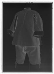 Keywords: Jacka av grå kamlott. Tillhört Karl X Gustav (1622-1660) - Livrustkammaren - 9920-negative.tif Denna dräkt består av jacka byxor och kanoner av grå kamlott d'Hollande Materialet är gråbrun yllekamlott med en vådbredd av 77 cm utan stad 20x8 5 tr/cm2 Varpen består av 1ljus och 1 mörk tråd som tvinnats åt höger tillsammans och inslaget består av 3 ljusa otvinnade trådar Staden utgörs av enbart 2 vita trådar <br/><br/>Jackan som till sin form mycket påminner om jackan till dräkt nr 3419 är sydd av 4 storastycken som vidgats i sidorna och rundats i kanten Den har ca 37 cm öppna skört i sidornaoch bak Jackan har sytts ihop med korta sidosömmar och mitt bak endast till midjan Ärmarna består av 2 stycken och har öppna framsömmar Jackan är mitt fram 69 cm lång ståndkragen oräknad denna är 5 cm hög mitt fram och mitt bak 3 5 cm Mitt bak är jackan 73cm lång utan krage Den har sytts så att dess korta sidosömmar sömmen mitt bak ochaxelsömmarna sytts samman från baksidan <br/><br/>Ärmarna har sytts ihop så att överstyckena ligger ovanpå de undre i den utsvängda baksömmenoch ärmarna har sedan trätts genom ärmhålet Endast den lilla korta framsömmen 15 cmlång nedanför det ca 35 cm långa sprundet har sytts ihop från baksidan I baksömmen påärmen är den nedre - raka - delen ca 15 cm lång öppen för att kunna bilda uppslag och harhär försetts med en skoning av brun rips Jackan verkar ej ha haft något mellanfoder men iärmuppslagen sitter papper mellan fodret och tyget Detta utgör styvnad för denursprungliga fastsydda garneringen av silverspets ty täta hål efter stygn visar att mansytt genom pappret det har varit en ca 9 cm bred spetsbesättning Jackan är fodrad medsilvermoiré med en vådbredd av 49 cm utan stad 64x14 tr/cm2 Varp och inslag är av vittotvinnat silke I varje inslag ligger på rätan en silverlan Stad 0 7 cm 6 gröna 6 gula 6 gröna 6 gula 6 gröna trådar samt 1 tjock vit - ripsbindning Mitt i tyget syns en randefter vattringen <br/><br/>Jackans foder är skuret på samma sätt som tyget i övrigt dock har man omedelbart ovanförsidoskörtets öppning satt in 2 horisontella kilar för att göra plagget mindre åtstramande De är något varierande i storlek och placering men ca 1 cm långa Fram har jackan en helobruten rad av knapphål på vänster sida vilket ju icke är fallet med jackan nr 23 Det ärinalles 29 knapphål 3 5 cm långa och sydda med brunt högertvinnat silke över silkestråd 8stygn/cm På höger sida sitter utefter hela kanten 28 st d 2 cm knappar av vilka dockendast de 17 översta kunnat begagnas eftersom fodret täcker de följande På vänsterframstycke finns i sidokanten 15 knappar och på höger framstyckes sidokant 16 st svarandemot de 16 knapphål som sitter i sidostyckena och baksprundet Inte någon knapp i sprundenmitt bak eller i sidorna har kunnat knäppas ty fodret har hela vägen sytts över hålen Baktill finns på vänster stycke endast 13 knappar kvar På vänster ärms överstycke sitterav knappgarneringen endast 8 knappar kvar på höger ärm finns 14 knappar kvar Ärmarnasbakstycken har vardera 16 knapphål Ärmuppslagen har skoning av brun rips på kamlotten <br/><br/>Kragen som är försedd med styvnad av fiskben instoppade i oblekt linnelärft 19x18tr/cm2 i vertikala avsyningar på drygt ½ cm s avstånd har ursprungligen varit fodrad medljus taft på insidan Detta tyg saknas nu nästan helt I jackan sitter axelsömmarna 2 sthängslen av linnelärft 20x17 tr/cm2 klädda med gulvitt siden De är något kortare framåtän bakåt och har 3 tränsade hål i varje ända så att möjlighet att reglera byxorna längdföreligger Jackan är på ärmarna och längs sprunden översållad av trådrester av grått silke även något enstaka prov på blått silke som tyder på en ursprungligen fastsydd garneringrunt kanterna I 1675 och 1691 års inventarier anmärks också att spetsarna sprättats bort isamband med 1675 års kröning original caption decade 1650 woollen Färg grå d1 - dräkt - yttermaterial material ylle - silver d2 - dräkt - foder material silver LRK Karl X Gustav av Sverige Museum Tre Kronor / Ståthållarämbetet - STÄ tidigare Kungl Husgerådskammaren 1999-2013 Modelejon 2002 place of origin original filename LN_B10731_013611 58011 inventory number LRK 21476 9920 CC0 Jacka av grå kamlott Tillhört Karl X Gustav 1622-1660 - Livrustkammaren - 9920 tif <gallery caption Different images of same object > File Jacka av grå kamlott Tillhört Karl X Gustav 1622-1660 - Livrustkammaren - 1360 tif File Jacka av grå kamlott Tillhört Karl X Gustav 1622-1660 - Livrustkammaren - 18482 tif File Jacka av grå kamlott Tillhört Karl X Gustav 1622-1660 - Livrustkammaren - 27044 tif </gallery> |