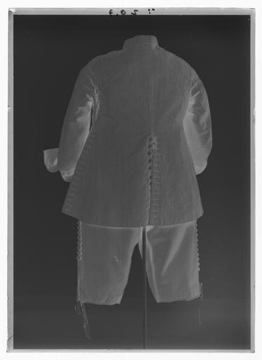 Keywords: Jacka av grå kamlott. Tillhört Karl X Gustav (1622-1660) - Livrustkammaren - 18482-negative.tif Denna dräkt består av jacka byxor och kanoner av grå kamlott d'Hollande Materialet är gråbrun yllekamlott med en vådbredd av 77 cm utan stad 20x8 5 tr/cm2 Varpen består av 1ljus och 1 mörk tråd som tvinnats åt höger tillsammans och inslaget består av 3 ljusa otvinnade trådar Staden utgörs av enbart 2 vita trådar <br/><br/>Jackan som till sin form mycket påminner om jackan till dräkt nr 3419 är sydd av 4 storastycken som vidgats i sidorna och rundats i kanten Den har ca 37 cm öppna skört i sidornaoch bak Jackan har sytts ihop med korta sidosömmar och mitt bak endast till midjan Ärmarna består av 2 stycken och har öppna framsömmar Jackan är mitt fram 69 cm lång ståndkragen oräknad denna är 5 cm hög mitt fram och mitt bak 3 5 cm Mitt bak är jackan 73cm lång utan krage Den har sytts så att dess korta sidosömmar sömmen mitt bak ochaxelsömmarna sytts samman från baksidan <br/><br/>Ärmarna har sytts ihop så att överstyckena ligger ovanpå de undre i den utsvängda baksömmenoch ärmarna har sedan trätts genom ärmhålet Endast den lilla korta framsömmen 15 cmlång nedanför det ca 35 cm långa sprundet har sytts ihop från baksidan I baksömmen påärmen är den nedre - raka - delen ca 15 cm lång öppen för att kunna bilda uppslag och harhär försetts med en skoning av brun rips Jackan verkar ej ha haft något mellanfoder men iärmuppslagen sitter papper mellan fodret och tyget Detta utgör styvnad för denursprungliga fastsydda garneringen av silverspets ty täta hål efter stygn visar att mansytt genom pappret det har varit en ca 9 cm bred spetsbesättning Jackan är fodrad medsilvermoiré med en vådbredd av 49 cm utan stad 64x14 tr/cm2 Varp och inslag är av vittotvinnat silke I varje inslag ligger på rätan en silverlan Stad 0 7 cm 6 gröna 6 gula 6 gröna 6 gula 6 gröna trådar samt 1 tjock vit - ripsbindning Mitt i tyget syns en randefter vattringen <br/><br/>Jackans foder är skuret på samma sätt som tyget i övrigt dock har man omedelbart ovanförsidoskörtets öppning satt in 2 horisontella kilar för att göra plagget mindre åtstramande De är något varierande i storlek och placering men ca 1 cm långa Fram har jackan en helobruten rad av knapphål på vänster sida vilket ju icke är fallet med jackan nr 23 Det ärinalles 29 knapphål 3 5 cm långa och sydda med brunt högertvinnat silke över silkestråd 8stygn/cm På höger sida sitter utefter hela kanten 28 st d 2 cm knappar av vilka dockendast de 17 översta kunnat begagnas eftersom fodret täcker de följande På vänsterframstycke finns i sidokanten 15 knappar och på höger framstyckes sidokant 16 st svarandemot de 16 knapphål som sitter i sidostyckena och baksprundet Inte någon knapp i sprundenmitt bak eller i sidorna har kunnat knäppas ty fodret har hela vägen sytts över hålen Baktill finns på vänster stycke endast 13 knappar kvar På vänster ärms överstycke sitterav knappgarneringen endast 8 knappar kvar på höger ärm finns 14 knappar kvar Ärmarnasbakstycken har vardera 16 knapphål Ärmuppslagen har skoning av brun rips på kamlotten <br/><br/>Kragen som är försedd med styvnad av fiskben instoppade i oblekt linnelärft 19x18tr/cm2 i vertikala avsyningar på drygt ½ cm s avstånd har ursprungligen varit fodrad medljus taft på insidan Detta tyg saknas nu nästan helt I jackan sitter axelsömmarna 2 sthängslen av linnelärft 20x17 tr/cm2 klädda med gulvitt siden De är något kortare framåtän bakåt och har 3 tränsade hål i varje ända så att möjlighet att reglera byxorna längdföreligger Jackan är på ärmarna och längs sprunden översållad av trådrester av grått silke även något enstaka prov på blått silke som tyder på en ursprungligen fastsydd garneringrunt kanterna I 1675 och 1691 års inventarier anmärks också att spetsarna sprättats bort isamband med 1675 års kröning original caption decade 1650 woollen Färg grå d1 - dräkt - yttermaterial material ylle - silver d2 - dräkt - foder material silver LRK Karl X Gustav av Sverige Museum Tre Kronor / Ståthållarämbetet - STÄ tidigare Kungl Husgerådskammaren 1999-2013 Modelejon 2002 place of origin original filename LN_B10732_013612 58011 inventory number LRK 21476 18482 CC0 Jacka av grå kamlott Tillhört Karl X Gustav 1622-1660 - Livrustkammaren - 18482 tif <gallery caption Different images of same object > File Jacka av grå kamlott Tillhört Karl X Gustav 1622-1660 - Livrustkammaren - 1360 tif File Jacka av grå kamlott Tillhört Karl X Gustav 1622-1660 - Livrustkammaren - 9920 tif File Jacka av grå kamlott Tillhört Karl X Gustav 1622-1660 - Livrustkammaren - 27044 tif </gallery> |