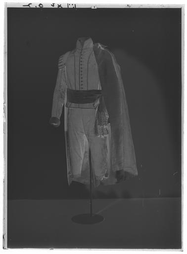 Keywords: Jacka hörande till Karl XIV Johans lilla serafimerordendräkt - Livrustkammaren - 1881-negative.tif LSH artwork sv Jacka av krabbröd sammet med långa ärmar kantad med smala guldgaloner Sömmarna täcks av ett guldsnöre Jackan är sydd med en mittsöm bak samt två snedställda sidsömmar täckta med guldsnöre Rakt skurna framstycken Knäppning mitt fram bestående av en knapprad på vänster framstycke med 14 runda höga knappar klädda med guldtråd i ett snörmakeriarbete På höger framstycke motsvarande knapphål 23 mm breda kantade med stygn av guldtråd Knäppningen är inramad med guldgalon Mitt på vardera framstycke en iskuren horisontell ficka 205 mm lång med en markerad slå 50 mm bred På vardera framstycke intill ärmen sitter en knapp Axelkarmar 70 mm breda vadderade och uppdelade i 13 tungor kantade med guldgalon Långa smala ärmar med sömmarna täckta av guldsnöre en yttersöm och en innersöm Vid ärmsluten ett 150 mm högt sprund som fortsättning på innersömmen Sprundet har en knäppning bestående av en knapprad med fem knappar samt motsvarande knapphål Ärmarna är i nederkanten uppvikta i 70 mm breda slag vilka är fodrade med gult blankt sidentyg med inslag av guldtråd och nederkanten kantad med guldgalon En 85 mm hög ståndkrage kantad med guldband upptill och i nederkanten över sömmen med guldsnöre På bakstycket under kragen sitter två knappar en knapp på vardera sida Vid dessa är fästat ett 130 mm långt axelsnöre av tvinnad guldtråd vilket löper ner mot axeln snett bak på ryggen På snöret mitt bak sitter två hyskor av två stora stygn av gul silkestråd Sömmarna bildar på baksycket från midjan fyra invikta skörtflikar På vardera sida i nedre kanten en kil Jackan är på insidan fodrad med vit sidenatlas original caption early other date century 19 velvet Färg röd material sammet - silk Färg vit material atlas - gold thread Färg guld material guldtråd size mm 600 fram size mm 650 bak size mm 1055 bröst LRK Karl XIV Johan av Sverige-Norge Jean Baptiste Bernadotte Fest och fritid vid hovet 2003 place of origin original filename LN_B15940_018820 56243 inventory number LRK 19663 1881 CC0 Jacka hörande till Karl XIV Johans lilla serafimerordendräkt - Livrustkammaren - 1881 tif <gallery caption Different images of same object > File Jacka hörande till Karl XIV Johans lilla serafimerordendräkt - Livrustkammaren - 78926 tif File Jacka hörande till Karl XIV Johans lilla serafimerordendräkt - Livrustkammaren - 53244 tif File Jacka hörande till Karl XIV Johans lilla serafimerordendräkt - Livrustkammaren - 61796 tif File Jacka hörande till Karl XIV Johans lilla serafimerordendräkt - Livrustkammaren - 70367 tif File Jacka hörande till Karl XIV Johans lilla serafimerordendräkt - Livrustkammaren - 61805 tif </gallery> |