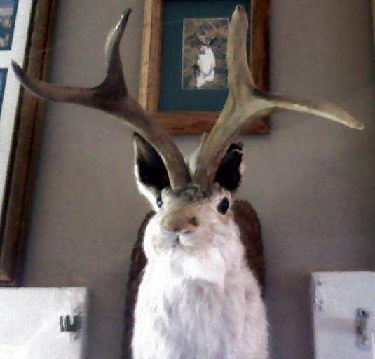 Keywords: Jackalope 101.jpg en A jackalope on the wall of a restaurant near the west entrance to death valley own SedesGobhani 2008-11-06 Rogue taxidermy Jackalopes
