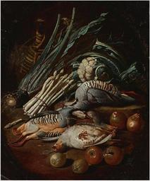 Keywords: Jacob van der Kerckhoven - Still life with birds, fruit and vegetables.jpg century 17 oil canvas cm 87 72 4 Auctioned at Sotheby's on 24 January 2008 in New York lot 278 http //www sothebys com/en/auctions/ecatalogue/2008/important-old-master-paintings-including-european-works-of-art-n08404/lot 278 html PD-old-100 Works by Jacob van der Kerckhoven Paintings of ducks 17th-century still-life paintings of dead game |