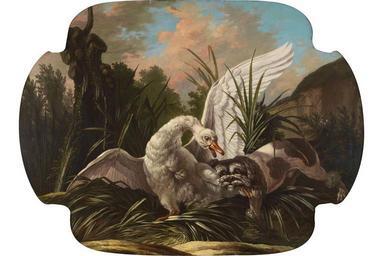 Keywords: Jacques-Charles Oudry, Hunting Scenes. Oil on canvas, a pair, 1 mid 18th century.jpg 1768 oil canvas cm 120 160 accession number http //www sothebys com/en/auctions/ecatalogue/2010/mobilier-orfvrerie-et-tableaux-anciens-provenant-de-l39ancienne-collection-de-madame-antenor-patio-pf1037/lot 295 html Sotheby's Paris 22 - 23 September 2010 lot 295 object history credit line exhibition history J C Oudry f 1768 signature and date Artdaily com <nowiki>File Jacques-Charles Oudry - Chien barbet attaquant un cygne 1768 jpg</nowiki> PD-old-100 Jacques-Charles Oudry Swans in 18th-century art Swans in painting 18th-century paintings of dogs Cygnus olor aggression Aggression in dogs 1768 paintings Dogs with other animals Swans in art of France |