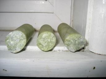 | Keywords: Jadeite rolling-pin fracture-cleavage.JPG en Macro image of an impure jade cylindrical dough rolling pin broken into three roughly equal pieces showing the mineral fracture and cleavage properties own AstroImager001 2011-02-12 Jadeite Rolling pins Green minerals Fracture mechanics Minerals of China |