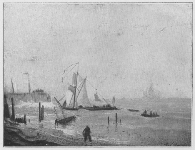 | Keywords: Jahrhundertausstellung 1906 KatNr. 0004.jpg Artwork Creator Andreas Achenbach Marine Oil Canvas cm 18 22 Städt Histor Museum Frankfurt a M lt Quelle self scanned from own book Vorstand der Deutschen Jahrhundertausstellung Herausgeber žKatalog zur Ausstellung deutscher Kunst aus der Zeit von 1775 “1875 in der Königlichen Nationalgalerie Berlin Verlag F Bruckmann AG München 1906 2 Bände PD-old-100-1923 Other versions Paintings by Andreas Achenbach Jahrhundertausstellung deutscher Kunst 1906 ImageNote 1 17 13 1061 819 1092 843 2 Wasser und Himmel in fast demselben hellen schwachvioletten Grau mit Weiß Nur variiert der Himmel durch den stärkeren Auftrag des Weiß Graue Schiffe mit gelbweißen Segeln Im Strand schwaches Rosa mit braunen Einzelheiten “ Bez unten rechts schwarzgrau A Achenbach ImageNoteEnd 1 |