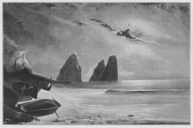 | Keywords: Jahrhundertausstellung 1906 KatNr. 0094.jpg Artwork Creator Carl Blechen Meeresstrand bei Neapel Oil Canvas cm 62 95 Kaiser Friedrich-Museum Posen lt Quelle self scanned from own book Vorstand der Deutschen Jahrhundertausstellung Herausgeber žKatalog zur Ausstellung deutscher Kunst aus der Zeit von 1775 “1875 in der Königlichen Nationalgalerie Berlin Verlag F Bruckmann AG München 1906 2 Bände 1829 PD-old-70-1923 Other versions Jahrhundertausstellung deutscher Kunst 1906 Carl Blechen in Jahrhundertausstellung deutscher Kunst 1906 Capri in art ImageNote 1 18 18 1768 1165 1820 1213 2 Fast ganz in Blau Der Himmel da wo ihn die blauen Wolken offen lassen blauschwarz; hier ein starker Kontrast mit dem leuchtenden Weiß des Mondes In das Blau der Wolken mischt sich stellenweise ein rauchiges Braun Auch die Felsen im Meere fast blauschwarz Das Meer das hier in wesentlich hellerem Blau gehalten ist sinkt im Schatten zu demselben dunklen Ton In der Nähe des Landes erhellen es weiße Reflexe Am Strand helles Violett und Dunkelbraun “ Gegen 1829 ImageNoteEnd 1 |