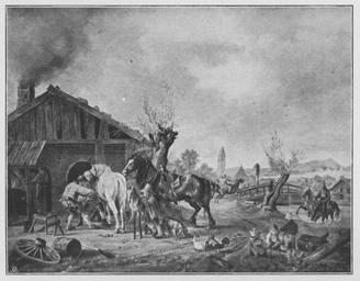 Keywords: Jahrhundertausstellung 1906 KatNr. 0231.jpg Artwork Creator Heinrich Bürkel Pferde vor einer Dorfschmiede Oil Canvas cm 43 54 Kunsthalle Hamburg lt Quelle self scanned from own book Vorstand der Deutschen Jahrhundertausstellung Herausgeber žKatalog zur Ausstellung deutscher Kunst aus der Zeit von 1775 “1875 in der Königlichen Nationalgalerie Berlin Verlag F Bruckmann AG München 1906 2 Bände 1826 PD-old-70-1923 Other versions Heinrich Bürkel Jahrhundertausstellung deutscher Kunst 1906 ImageNote 1 14 14 1068 831 1105 864 2 Schmutzigbraune und grünliche Töne Vereinzelte rotbraune weiße und graublaue Stellen “ Bez unten links braun H Bürkel 1826 ImageNoteEnd 1 |