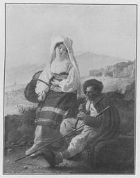Keywords: Jahrhundertausstellung 1906 KatNr. 0264.jpg Artwork Creator Franz Ludwig Catel Italienischer Hirt und Mädchen Oil Canvas cm 48 37 Kunsthalle Hamburg lt Quelle self scanned from own book Vorstand der Deutschen Jahrhundertausstellung Herausgeber žKatalog zur Ausstellung deutscher Kunst aus der Zeit von 1775 “1875 in der Königlichen Nationalgalerie Berlin Verlag F Bruckmann AG München 1906 2 Bände 1800 PD-old-100-1923 Other versions Paintings by Franz Ludwig Catel Jahrhundertausstellung deutscher Kunst 1906 ImageNote 1 16 15 740 953 773 982 2 Der Hirt in dunkelbraunen und grauen Tönen Rotbraunes Fleisch Das Mädchen grauweißes Fleisch mit rosa und dunkelbraunen Schattierungen Weißes Hemd Die Schürze aus stumpfem Graublau mit Weiß und Rot In der Landschaft Braun Grau und Hellblau “ Bez unten rechts schwarz F Catel f Rom 1800 ImageNoteEnd 1