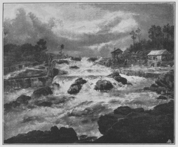 Keywords: Jahrhundertausstellung 1906 KatNr. 0318a.jpg Artwork Creator Johan Christian Claussen Dahl Hönefossen Oil Canvas Skizze cm 16 7 21 3 J S Öwre Bygdö bei Kristiania lt Quelle self scanned from own book Vorstand der Deutschen Jahrhundertausstellung Herausgeber žKatalog zur Ausstellung deutscher Kunst aus der Zeit von 1775 “1875 in der Königlichen Nationalgalerie Berlin Verlag F Bruckmann AG München 1906 2 Bände 1843 PD-old-70-1923 Other versions Johan Christian Clausen Dahl in Jahrhundertausstellung deutscher Kunst 1906 Jahrhundertausstellung deutscher Kunst 1906 ImageNote 1 15 17 930 761 962 795 2 Sehr dunkle rotbraune Felsen Das Wasser schmutziggrau mit Weiß und wenig Rosa Im Dach der Holzhütte kommt das Rosa das alle Teile des Bildes begleitet am deutlichsten heraus Dunkelgraue Wolken mit Rosa auf schmutzigblauem Himmel “ Bez unten rechts rot Dahl d 9 April 1843 ImageNoteEnd 1 |