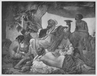 | Keywords: Jahrhundertausstellung 1906 KatNr. 0426.jpg Artwork Creator Anselm Feuerbach Hafis in der Schenke Oil Canvas cm 204 255 Rechtsanwalt A v Harder Mannheim lt Quelle self scanned from own book Vorstand der Deutschen Jahrhundertausstellung Herausgeber žKatalog zur Ausstellung deutscher Kunst aus der Zeit von 1775 “1875 in der Königlichen Nationalgalerie Berlin Verlag F Bruckmann AG München 1906 2 Bände 1852 PD-old-70-1923 Other versions Paintings by Anselm Feuerbach Jahrhundertausstellung deutscher Kunst 1906 Anselm Feuerbach in Jahrhundertausstellung deutscher Kunst 1906 ImageNote 1 39 20 2393 1900 2474 1952 2 Bräunlicher sauciger Gesamtton der nach verhaltenen orange- und hellgelben Tönen spielt und zumal durch die verschiedenen Fleischtöne wie auch durch das Gewand des Hafis und der liegenden Frau charakterisiert wird In einzelnen Stoffen verschleiertes Blau und Rot Architektur schmutziggrau Die Luft blaugrau “ Bez unten rechts ANSELM FEUERBACH PARIS 1852 “ Allgeyer-Neumann Nr 111 ImageNoteEnd 1 |