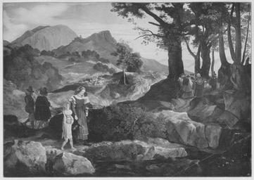 Keywords: Jahrhundertausstellung 1906 KatNr. 0496.jpg Artwork Creator Carl Philipp Fohr Romantische Landschaft Oil Canvas cm 97 133 Großherzogl Schloß Darmstadt lt Quelle self scanned from own book Vorstand der Deutschen Jahrhundertausstellung Herausgeber žKatalog zur Ausstellung deutscher Kunst aus der Zeit von 1775 “1875 in der Königlichen Nationalgalerie Berlin Verlag F Bruckmann AG München 1906 2 Bände PD-old-70-1923 Other versions Carl Philipp Fohr Jahrhundertausstellung deutscher Kunst 1906 ImageNote 1 29 26 2507 1763 2565 1821 2 Vordergrund in tonreichem Braun das in den belichteten Teilen der Felsen nach grau spielt Das Mädchen in dunkelolivenem Kleid mit dunkelvioletten Ärmeln und zinnoberroter Schürze trägt ein weißgrau und dunkelblau gekleidetes Kind Das neben ihr gehende Kind in hellgrauem Hemd Hellbraunes Fleisch In den anderen Figuren dunkle graue braune rote und blaue Töne Die Berge des Mittelplans grau die des hellen Hintergrundes blau vor rosagelbem Himmel der nach oben in den Ton der blauen Berge übergeht und mit gelblich weißen Wolken bedeckt ist “ 1875 ImageNoteEnd 1 |