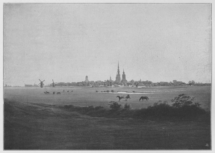 Keywords: Jahrhundertausstellung 1906 KatNr. 0531.jpg Artwork Creator Caspar David Friedrich Wiesen bei Greifswald Oil Canvas cm 35 49 Kunsthalle Hamburg lt Quelle self scanned from own book Vorstand der Deutschen Jahrhundertausstellung Herausgeber žKatalog zur Ausstellung deutscher Kunst aus der Zeit von 1775 “1875 in der Königlichen Nationalgalerie Berlin Verlag F Bruckmann AG München 1906 2 Bände 1820 “1830 PD-old-70-1923 Other versions Caspar David Friedrich in Jahrhundertausstellung deutscher Kunst 1906 Jahrhundertausstellung deutscher Kunst 1906 ImageNote 1 26 18 1526 1087 1581 1127 2 Grün Blaugrau und Gelb in reichen Abtönungen Das Grün beginnt am dunkelsten im Vordergrund wo es mit Braun gemischt ist nimmt im Mittelplan gelb an und schließt vor der Silhouette der Stadt mit einer schmalen gelben Linie ab Die Stadt in milchigem Grau durch das diskrete Grün der Bäume und das schwache Rosa einzelner Dächer bereichert Der Himmel geht von Orange nach hellstem Türkisblau über; das Orange überwiegt “ 1820 “1830 ImageNoteEnd 1 |