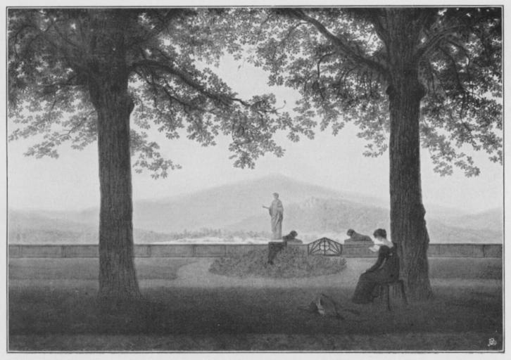 Keywords: Jahrhundertausstellung 1906 KatNr. 0535.jpg Artwork Creator Caspar David Friedrich Aussicht von einem Park in eine freie Landschaft Oil Canvas cm 53 5 70 Königliche Villa Liegnitz Erdmannsdorf lt Quelle self scanned from own book Vorstand der Deutschen Jahrhundertausstellung Herausgeber žKatalog zur Ausstellung deutscher Kunst aus der Zeit von 1775 “1875 in der Königlichen Nationalgalerie Berlin Verlag F Bruckmann AG München 1906 2 Bände 1811 PD-old-100-1923 Other versions Caspar David Friedrich in Jahrhundertausstellung deutscher Kunst 1906 Jahrhundertausstellung deutscher Kunst 1906 ImageNote 1 14 19 1355 938 1384 976 2 Braunroter Vordergrund mit stumpfem Grün das Blattwerk der Bäume gelbgrün Auf dem Rasen ein gelber Korb mit purpurrotem Tuch Die Frau in schwarzem Kleid Hintergrund hellgrüne mit Grau versetzte Wiese zwischen Hügeln aus hellem grauem Violett Der Himmel beginnt gelb und geht nach oben in Hellblau über “ 1811 ImageNoteEnd 1 |
