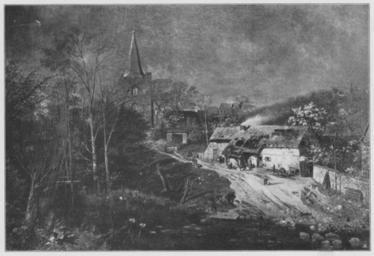 Keywords: Jahrhundertausstellung 1906 KatNr. 0665.jpg Artwork Creator Theodor Hagen Landschaft Oil Canvas cm 108 156 Schlesisches Museum der bildenden Künste Breslau lt Quelle self scanned from own book Vorstand der Deutschen Jahrhundertausstellung Herausgeber žKatalog zur Ausstellung deutscher Kunst aus der Zeit von 1775 “1875 in der Königlichen Nationalgalerie Berlin Verlag F Bruckmann AG München 1906 2 Bände 1872 PD-old-70-1923 Other versions Theodor Hagen Jahrhundertausstellung deutscher Kunst 1906 ImageNote 1 21 23 2016 1366 2052 1407 2 Lehmgelbe von dunklem starkem Grün eingefaßte Straße Der Schatten im Grün ist dunkelgrün Der beleuchtete Teil des Bauernhauses gelbweiß Im Dach der Ton der Straße durch dunkelbraune Flecken modifiziert Das schlammbraune Wasser wird nach links zu schwarz Dunkler blaugrauer Himmel “ Bez unten links schwarz Th Hagen Weimar 72 ImageNoteEnd 1 |