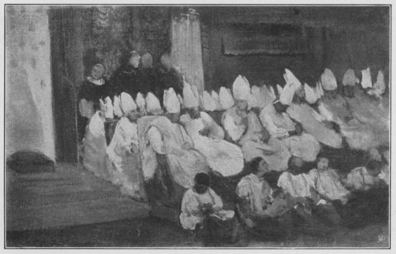 Keywords: Jahrhundertausstellung 1906 KatNr. 0692c.jpg Oil Canvas auf Pappe aufgeklebt cm 32 52 Ernst Hausmann Berlin lt Quelle self scanned from own book Vorstand der Deutschen Jahrhundertausstellung Herausgeber žKatalog zur Ausstellung deutscher Kunst aus der Zeit von 1775 “1875 in der Königlichen Nationalgalerie Berlin Verlag F Bruckmann AG München 1906 2 Bände 1854 PD-old-70-1923 Other versions ImageNote 1 13 10 1120 712 1149 736 2 Die Stufen ziegelrot In den Röcken der Priester der ersten Bank ist das Rot durch die stärkere Bewegung des Pinsels lebhafter und nähert sich Purpur In den Stolas dieser Reihe ist das Weiß stark mit Gelb versetzt Die Kappen alle rein weiß Die Lehnen havanabraun Die Stehenden der hinteren Reihe und die am Boden hockenden Chorknaben sind schwarz gekleidet mit weißgrauen Chorhemden Der Boden dunkelgrün In der Rückwand namentlich violettes Bordeaux Daneben verdecktes Weiß und Braun Dünner Auftrag “ 1854 ImageNoteEnd 1 Friedrich Karl Hausmann Jahrhundertausstellung deutscher Kunst 1906 |
