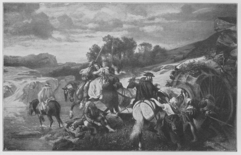 Keywords: Jahrhundertausstellung 1906 KatNr. 0700.jpg Rudolf Henneberg Reiterzug einen Bach überschreitend Technique Oil Canvas cm 56 86 Großherzogl Museum Darmstadt lt Quelle self scanned from own book Vorstand der Deutschen Jahrhundertausstellung Herausgeber žKatalog zur Ausstellung deutscher Kunst aus der Zeit von 1775 “1875 in der Königlichen Nationalgalerie Berlin Verlag F Bruckmann AG München 1906 2 Bände 1857 PD-old-70-1923 Other versions Rudolf Henneberg Jahrhundertausstellung deutscher Kunst 1906 ImageNote 1 17 15 1652 1052 1694 1090 2 Das Terrain in mannigfaltig variiertem Grün das im Vordergrund dunkel und mit Braun versetzt im grellbeleuchteten Stück hinter der Gruppe zu Weißgrün wird und sich nach hinten rechts in braune Töne links in stumpfe blaue Töne verliert Der Bach ganz in dämmrigem Grau das mit der jenseits aufsteigenden Felswand eins ist Bewegter grauer Himmel In der Gruppe entscheiden die braunen Töne Das erste Pferd lichter Ocker der Reiter dunkles Bordeauxrot Die Frau flachshaarig wie Schweif und Mähne des Pferdes mit wasserblauem Tuch über dem weißen Hemd Das Pferd in der Mitte lichtes Braun der Anzug des Ritters erdbeerrot ockerbraune Stiefeln dunkelgraue Rüstung mit weißen Reflexen Das Fleisch der Frau rosa; grauweißes Kleid mit dunkelgrauen Stellen rosabraunes Mieder Die dritte Figur in Blau Der vorderste Reiter stumpf hellgrauer Mantel rosa Hosen; schwarzes Pferd Der Mann der sich die dunkelblauen Hosen aufkrempelt trägt einen orangenen Turban “ Bez unten rechts braunrot R Henneberg 1857 ImageNoteEnd 1 |