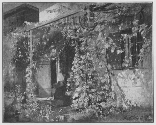 Keywords: Jahrhundertausstellung 1906 KatNr. 0736d.jpg Rudolf Hirth du Frênes In der Laube Technique Oil Canvas cm 39 47 Rudolf Hirth du Frênes München lt Quelle self scanned from own book Vorstand der Deutschen Jahrhundertausstellung Herausgeber žKatalog zur Ausstellung deutscher Kunst aus der Zeit von 1775 “1875 in der Königlichen Nationalgalerie Berlin Verlag F Bruckmann AG München 1906 2 Bände PD-old-70-1923 Other versions Rudolf Hirth du Frênes Jahrhundertausstellung deutscher Kunst 1906 ImageNote 1 14 15 934 745 962 773 2 Helle gelbgrüne Blätter in dem weißen je nach der Dichtigkeit der Blätter verschieden beschatteten Haus In der rosa Jacke des im Schatten sitzenden Mädchens ein paar rubinrote Reflexe Blauer Rock “ Bez unten rechts rot R Hirth d F ImageNoteEnd 1 |