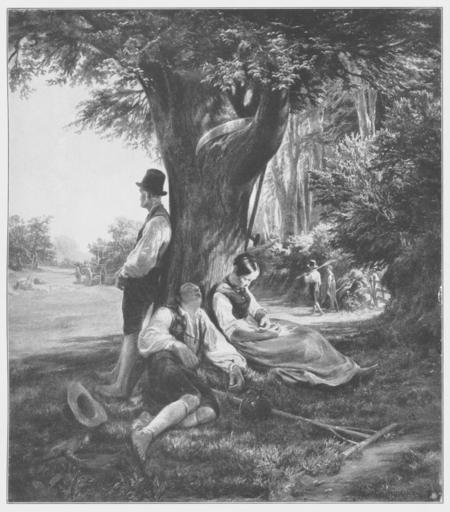 Keywords: Jahrhundertausstellung 1906 KatNr. 0802.jpg Artwork Creator Hermann Kauffmann Landleute bei der Ernte Mittagsruhe haltend Oil Canvas cm 52 6 48 5 Kunsthalle Hamburg lt Quelle self scanned from own book Vorstand der Deutschen Jahrhundertausstellung Herausgeber žKatalog zur Ausstellung deutscher Kunst aus der Zeit von 1775 “1875 in der Königlichen Nationalgalerie Berlin Verlag F Bruckmann AG München 1906 2 Bände 1845 PD-old-70-1923 Other versions Hermann Kauffmann Jahrhundertausstellung deutscher Kunst 1906 ImageNote 1 26 26 1645 1871 1703 1936 2 Braungrüner Gesamtton Bläulichgrauer Hintergrund Die Sonnenreflexe gewinnen aus den Lokalfarben reine Töne das Weiß der Hemden das Grün des Mieders und die roten Stellen Das Fleisch in bräunlichem Rosa Blauer Himmel mit rosaweißen und grauen Wolken “ Bez unten rechts braun H Kauffmann Links 1845 ImageNoteEnd 1 |