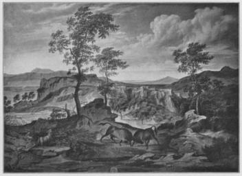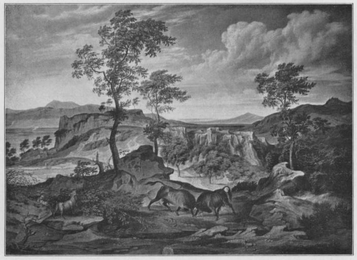 Keywords: Jahrhundertausstellung 1906 KatNr. 0877.jpg Artwork Creator Joseph Anton Koch Die Serpentara bei Olevano mit kämpfenden Stieren Die kämpfenden Stiere sollen von B Genelli sein Oil Canvas cm 75 102 Exzellenz Dr Richard Schöne Berlin lt Quelle self scanned from own book Vorstand der Deutschen Jahrhundertausstellung Herausgeber žKatalog zur Ausstellung deutscher Kunst aus der Zeit von 1775 “1875 in der Königlichen Nationalgalerie Berlin Verlag F Bruckmann AG München 1906 2 Bände PD-old-70-1923 Other versions Joseph Anton Koch Jahrhundertausstellung deutscher Kunst 1906 ImageNote 1 21 14 1599 1165 1642 1196 2 Das Grau und das Braun der Stiere repräsentieren die Farben der ganzen Landschaft Hintergrund blaugrau “ Bez unten rechts braun J K “ 1832 “ Die kämpfenden Stiere sollen von B Genelli sein ImageNoteEnd 1 |