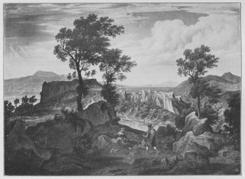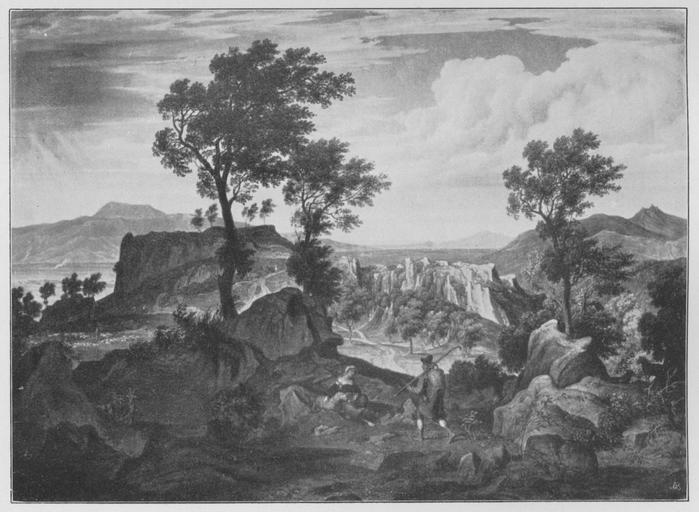 Keywords: Jahrhundertausstellung 1906 KatNr. 0880.jpg Artwork Creator Joseph Anton Koch Die Serpentara bei Olevano Oil Canvas cm 56 79 Anton v Schuhmacher Innsbruck lt Quelle self scanned from own book Vorstand der Deutschen Jahrhundertausstellung Herausgeber žKatalog zur Ausstellung deutscher Kunst aus der Zeit von 1775 “1875 in der Königlichen Nationalgalerie Berlin Verlag F Bruckmann AG MĂĽnchen 1906 2 Bände 1820 PD-old-70-1923 Other versions Joseph Anton Koch Jahrhundertausstellung deutscher Kunst 1906 ImageNote 1 18 16 1540 1121 1579 1157 2 Braungraue Felsen grĂĽnbraune Bäume Der Hirt in Braun und Blau mit grauem Korb die Frau in Rot und Blau Im Hintergrund graublaue Berge Blauer Himmel mit grauen weiĂź und braun gesäumten Wolken “ Bez unten rechts auf einem Stein braun J K “ 1820 ImageNoteEnd 1 |