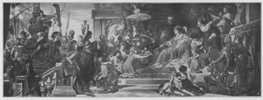Keywords: Jahrhundertausstellung 1906 KatNr. 1098.jpg Artwork Creator Hans Makart Venedig huldigt der Katharina Cornaro Oil Canvas cm 400 1060 Nationalgalerie Berlin lt Quelle Vorstand der Deutschen Jahrhundertausstellung Herausgeber žKatalog zur Ausstellung deutscher Kunst aus der Zeit von 1775 “1875 in der Königlichen Nationalgalerie Berlin Verlag F Bruckmann AG München 1906 2 Bände ; self scanned from own book 1873 PD-old-70-1923 Other versions Hans Makart Jahrhundertausstellung deutscher Kunst 1906 ImageNote 1 21 14 2729 1013 2771 1058 2 Die Fleischtöne gehen von blassem gelblichem Weiß bis zu dunklem Bronzebraun Katharina Cornaro mit rotblondem Haar in goldgelbem Kleid Der Thron aus bordeauxroten Stoffen mit blauem goldbraun ornamentiertem Sammet auf den Stufen Dasselbe Rot wiederholt sich in allen Teilen des Bildes Nicht ganz so häufig kehrt das Goldgelb wieder gewöhnlich in dunkleren Tönen Das Blau vertieft sich in dem Aufbau der Gondel rechts und kommt heller als in den Stufen im Himmel wieder Einzelheiten in schmutzigem Olive Die Architektur braungrau und grauweiß “ 1873 ImageNoteEnd 1 |