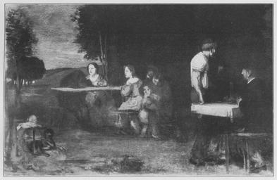 Keywords: Jahrhundertausstellung 1906 KatNr. 1110.jpg Artwork Creator Hans von Marées Römische Vigna Oil Canvas cm 80 133 Frau Generalmusikdirektor Mary Levi Partenkirchen lt Quelle Vorstand der Deutschen Jahrhundertausstellung Herausgeber žKatalog zur Ausstellung deutscher Kunst aus der Zeit von 1775 “1875 in der Königlichen Nationalgalerie Berlin Verlag F Bruckmann AG München 1906 2 Bände ; self scanned from own book 1870 “71 PD-old-70-1923 Other versions Paintings by Hans von Marées Jahrhundertausstellung deutscher Kunst 1906 Hans von Marées in Jahrhundertausstellung deutscher Kunst 1906 ImageNote 1 27 23 1778 1143 1826 1191 2 Die Gesichter der Männer in einem starken Erdbeerrot das sich in dem am weitesten Zurücksitzenden in dunklen Schatten hüllt Der Wirt in bläulichweißem Hemd trägt auf dem dunkelgrauen Haar ein purpurrotes leuchtendes Käppi Dasselbe Rot in dem Rock der Hauptfigur der Frauengruppe violettrosa Taille Ein sehr verdünnter Ton dieses Violettrosa gibt die Farbe der helleuchtenden Gesichter der beiden belichteten Frauen von denen die zweite in Mausgrau gekleidet ist Die anderen in braunem Schatten Der Himmel Preußischblau mit sehr wenig weißen Wölkchen Sonst graue und indifferente dunkle Töne Das Walddickicht hinter den Gruppen fast pechschwarz “ 1870 “71 ImageNoteEnd 1