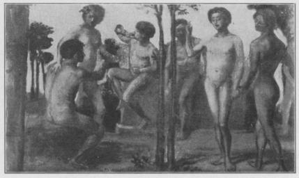 Keywords: Jahrhundertausstellung 1906 KatNr. 1117.jpg Artwork Creator Hans von Marées Tanzende Männer Oil Canvas cm 36 60 5 Professor Adolf von Hildebrand Florenz-München lt Quelle Vorstand der Deutschen Jahrhundertausstellung Herausgeber žKatalog zur Ausstellung deutscher Kunst aus der Zeit von 1775 “1875 in der Königlichen Nationalgalerie Berlin Verlag F Bruckmann AG München 1906 2 Bände ; self scanned from own book 1874 PD-old-70-1923 Other versions Paintings by Hans von Marées in the Von-der-Heydt-Museum Jahrhundertausstellung deutscher Kunst 1906 Hans von Marées in Jahrhundertausstellung deutscher Kunst 1906 19th-century paintings in the Von-der-Heydt-Museum ImageNote 1 16 11 1223 718 1253 749 2 Rosabraunes Fleisch Bäume und Boden dunkelgrün Der Hintergrund in einem Weiß das von dünn aufgetragenem Blau bedeckt ist Dies Blau dient auch um die Konturen zu unterstreichen “ 1874 ImageNoteEnd 1 |