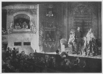 Keywords: Jahrhundertausstellung 1906 KatNr. 1157.jpg Artwork Creator Adolph von Menzel Théâtre Gymnase Oil Canvas cm 46 62 Nationalgalerie Berlin lt Quelle Abbildung seitenverkehrt Vorstand der Deutschen Jahrhundertausstellung Herausgeber žKatalog zur Ausstellung deutscher Kunst aus der Zeit von 1775 “1875 in der Königlichen Nationalgalerie Berlin Verlag F Bruckmann AG München 1906 2 Bände ; self scanned from own book 1856 PD-old-70-1923 Other versions Paintings by Adolph von Menzel in the Alte Nationalgalerie Jahrhundertausstellung deutscher Kunst 1906 Adolph von Menzel in Jahrhundertausstellung deutscher Kunst 1906 Théâtre du Gymnase by Adolph von Menzel ImageNote 1 24 24 1842 1324 1889 1371 2 Im mittleren Teil des Bühnenhintergrundes vor dem sich die Gruppe befindet dunkles Gelb mit rötlichen Reflexen und dunkelbraunen Schatten Die Avantszene purpurn mit bräunlichgelben Ornamenten Die folgende Logenwand heller Milchkaffee mit grauen Schatten à ber der Loge mit dem roten Vorhang gelbbraune Ornamente Die erste Dame auf der Bühne reiches Blau das im Licht fast zu Weiß wird im Schatten zu Blauschwarz Rötlichweißer Umhang Der Herr grauschwarz die zweite Dame rötliches Grau mit Weiß Die Gesichter aus stark roten Flecken Der Sessel im Licht gelbgrün mit roten Flecken im Schatten graublau Die Zuschauer in den Logen in den Tönen der Logenwände aus leuchtend roten Flecken Das Orchester schwarzbraun mit rotbraun skizzierten Gesichtern und feurigroten und grauen Einzelheiten “ Bez unten links rot Menzel 1856 v Tschudi Menzel-Werk Nr 107 ImageNoteEnd 1