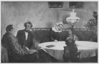 Keywords: Jahrhundertausstellung 1906 KatNr. 1169.jpg Artwork Creator Adolph von Menzel Familiengruppe im Zimmer bei Lampenlicht Oil Canvas cm 24 38 Nationalgalerie Berlin lt Quelle Vorstand der Deutschen Jahrhundertausstellung Herausgeber žKatalog zur Ausstellung deutscher Kunst aus der Zeit von 1775 “1875 in der Königlichen Nationalgalerie Berlin Verlag F Bruckmann AG München 1906 2 Bände ; self scanned from own book um 1858 PD-old-70-1923 Other versions Paintings by Adolph von Menzel in the Alte Nationalgalerie Jahrhundertausstellung deutscher Kunst 1906 Adolph von Menzel in Jahrhundertausstellung deutscher Kunst 1906 ImageNote 1 14 18 1774 1140 1810 1181 2 Schmutziggrüngraue Wand purpurrotes Sofa weißes Tischtuch; in den Schatten kehrt die Farbe der Wand wieder Der erste Herr links in rotbraunem Rock Dieselbe Farbe in den Köpfen Die erste Dame auf dem Sofa in dunkelgrünem Kleid weißer Haube Die anderen Personen in dunklen Farben “ Um 1858 v Tschudi Menzel-Werk Nr 59 ImageNoteEnd 1 |