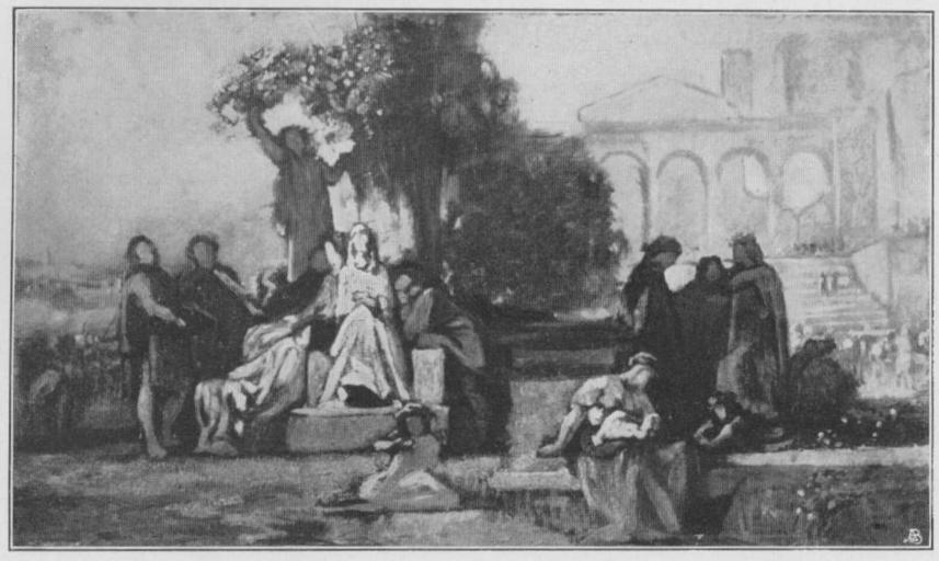 Keywords: Jahrhundertausstellung 1906 KatNr. 1337b.jpg Artwork Creator Carl Theodor von Piloty Gartenfest Papier auf Pappe Skizze cm 30 51 Dr J Deutsch München lt Quelle Vorstand der Deutschen Jahrhundertausstellung Herausgeber žKatalog zur Ausstellung deutscher Kunst aus der Zeit von 1775 “1875 in der Königlichen Nationalgalerie Berlin Verlag F Bruckmann AG München 1906 2 Bände ; self scanned from own book PD-old-70-1923 Other versions Carl Theodor von Piloty Jahrhundertausstellung deutscher Kunst 1906 ImageNote 1 14 6 1209 719 1237 739 2 In den Figuren lebhafte rosa purpurrote gelbe und blaue Töne unvermischt Im Vordergrund links lebhaftes Grün Der Baum braun Die Architektur hellrosa mit hellbraunen und hellblauen Schatten Hellblauer Himmel mit Rosa und Hellbraun ImageNoteEnd 1 |