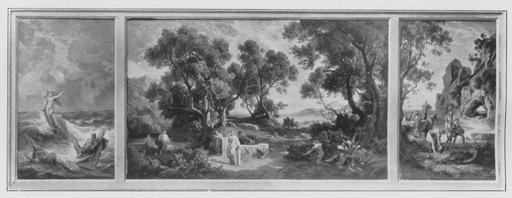 Keywords: Jahrhundertausstellung 1906 KatNr. 1346.jpg Artwork Creator Friedrich Preller der Ältere Farbenskizzen zur Odyssee Oil Canvas mittlere cm 40 67 seitliche cm 40 24 Frau von Eichel-Streiber Eisenach lt Quelle Vorstand der Deutschen Jahrhundertausstellung Herausgeber žKatalog zur Ausstellung deutscher Kunst aus der Zeit von 1775 “1875 in der Königlichen Nationalgalerie Berlin Verlag F Bruckmann AG München 1906 2 Bände ; self scanned from own book 1864/65 PD-old-70-1923 Other versions Friedrich Preller der Ältere Jahrhundertausstellung deutscher Kunst 1906 ImageNote 1 25 30 1951 711 1998 771 2 Das Fleisch in mehr oder weniger gebräuntem Rosa Die Kostüme vorwiegend rosa zuweilen mattgelb und mattblau Die Felsen oft im selben Rosa auch in grauen und graubraunen Tönen Ebenso die Architektur Die Bäume grünlichgrau und braungrün Das Wasser türkisblau oder grünlichblau Der Himmel fast ausnahmslos türkisblau mit weißgrauen und rosabraunen Wolken “ Die Bezeichnung gewöhnlich unten links Monogramm F P zwischen 18 und 65 die Nrn 1345 “47 und 1350 datiert 1864 ImageNoteEnd 1 |