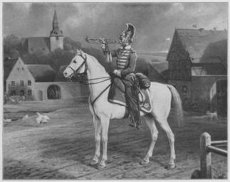 Keywords: Jahrhundertausstellung 1906 KatNr. 1388r.jpg Artwork Creator Louis Ferdinand von Rayski Trompeter Oil Canvas cm 106 139 Graf Adolf Einsiedel-Milkel Milkel Ober- Lausitz lt Quelle Vorstand der Deutschen Jahrhundertausstellung Herausgeber žKatalog zur Ausstellung deutscher Kunst aus der Zeit von 1775 “1875 in der Königlichen Nationalgalerie Berlin Verlag F Bruckmann AG München 1906 2 Bände ; self scanned from own book PD-old-70-1923 Other versions Louis Ferdinand von Rayski Jahrhundertausstellung deutscher Kunst 1906 ImageNote 1 18 18 1642 1300 1678 1333 2 Der Schimmel weiß mit grauen Schatten Blaugraue Uniformen mit weißem Besatz Graue Morgenatmosphäre Platz und Häuser in grauen und braunrötlichen Tönen Die graue Kirche ist von grauem Grün umgeben Gelbgraue Regenwolken “ Bez auf der Rückseite ImageNoteEnd 1 |