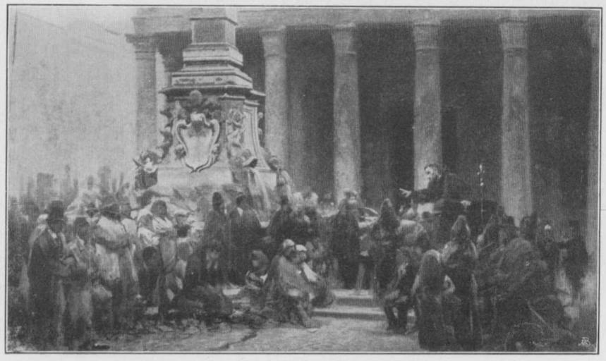 Keywords: Jahrhundertausstellung 1906 KatNr. 1429.jpg Wilhelm Riefstahl Kapuzinerpredigt vor dem Pantheon Technique Oil Canvas Skizze cm 29 46 Frau Christiane Riefstahl München lt Quelle Vorstand der Deutschen Jahrhundertausstellung Herausgeber žKatalog zur Ausstellung deutscher Kunst aus der Zeit von 1775 “1875 in der Königlichen Nationalgalerie Berlin Verlag F Bruckmann AG München 1906 2 Bände ; self scanned from own book 1870 PD-old-70-1923 Other versions Wilhelm Riefstahl Jahrhundertausstellung deutscher Kunst 1906 ImageNote 1 12 5 1213 719 1238 738 2 Das Pantheon in violettem Grau das auch die gelbliche Fassade zur Linken beschattet Bläulichweißgrauer Brunnen mit braunen Konturen Die Menge meist in dunklen Mischfarben Dazwischen rote Einzelheiten Der Kapuziner in brauner Kutte auf schwarzer Kanzel “ 1870 ImageNoteEnd 1 |