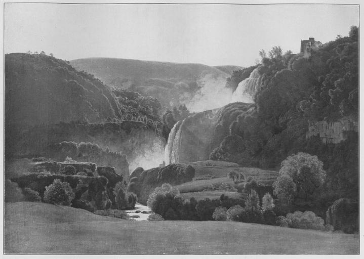 Keywords: Jahrhundertausstellung 1906 KatNr. 1441.jpg Artwork Creator Johann Martin von Rohden Tivoli-Wasserfall Oil Canvas cm 43 62 Bernt Grönvold Berlin lt Quelle Vorstand der Deutschen Jahrhundertausstellung Herausgeber žKatalog zur Ausstellung deutscher Kunst aus der Zeit von 1775 “1875 in der Königlichen Nationalgalerie Berlin Verlag F Bruckmann AG München 1906 2 Bände ; self scanned from own book 1800 “1810 PD-old-70-1923 Other versions Johann Martin von Rohden Jahrhundertausstellung deutscher Kunst 1906 ImageNote 1 18 21 2358 1660 2400 1708 2 Der Vordergrund mildes Blattgrün auf hellbrauner Unterlage Dies Grün kommt in den beiden Waldbergen als Kontur der beleuchteten Bäume wieder während die Masse der Berge in blauem Schatten bleibt Weißer Wasserfall in der Schattenseite hellgrau Weißgrauer Wasserdunst Der Berg im Hintergrund grauviolett mit grünbraunen Reflexen Bläulicher weißer Himmel “ 1800 “1810 ImageNoteEnd 1 |