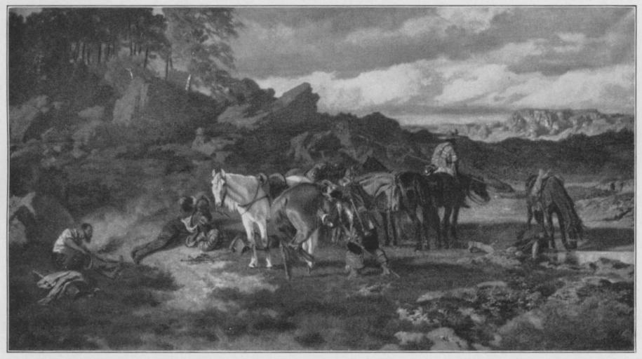 Keywords: Jahrhundertausstellung 1906 KatNr. 1459.jpg Karl Roux Rast der Landsknechte Technique Oil Canvas cm 67 117 Kunsthalle Hamburg lt Quelle Vorstand der Deutschen Jahrhundertausstellung Herausgeber žKatalog zur Ausstellung deutscher Kunst aus der Zeit von 1775 “1875 in der Königlichen Nationalgalerie Berlin Verlag F Bruckmann AG München 1906 2 Bände ; self scanned from own book 1853 PD-old-70-1923 Other versions Karl Roux Jahrhundertausstellung deutscher Kunst 1906 ImageNote 1 16 16 1812 1001 1851 1036 2 Rostbraunes Haar dessen Ton sich in dem ersten Pferd und den Kostümen der Landsknechte nach Rot erhöht Dunkelgraue Felsen Der Himmel mit schweren weißlichbraunen grauen und dunkelbraungrauen Wolken “ Bez unten rechts schwarz Carl Roux 1853 ImageNoteEnd 1 |