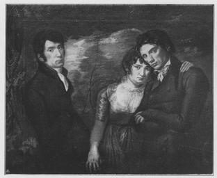 Keywords: Jahrhundertausstellung 1906 KatNr. 1462.jpg Artwork Creator Philipp Otto Runge Der Künstler seine Frau und sein Bruder Oil Canvas cm 100 122 Kunsthalle Hamburg lt Quelle Vorstand der Deutschen Jahrhundertausstellung Herausgeber žKatalog zur Ausstellung deutscher Kunst aus der Zeit von 1775 “1875 in der Königlichen Nationalgalerie Berlin Verlag F Bruckmann AG München 1906 2 Bände ; self scanned from own book 1804 PD-old-100-1923 Other versions Philipp Otto Runge Jahrhundertausstellung deutscher Kunst 1906 ImageNote 1 31 19 1298 1075 1350 1110 2 Das Weißrosa des Fleisches von einem Ton gebräunt dessen Basis in den Haaren zu finden ist Runge in stahlblauem Rock mit dem Ansatz der orangegelben Weste Das Kleid der Frau in einem bräunlichen Perlmutterton der sich etwas vertieft in dem Baum wiederholt Der Bruder mit dem dunkelsten Haar in ursprünglich wohl dunkelblauem fast schwarzem Rock Braungrüne Hintergrundlandschaft “ Nach A Lichtwark rührt der branstige Ton des Bildes von nicht sachgemäßen Ölwaschungen früherer Besitzer her “ 1804 ImageNoteEnd 1 |