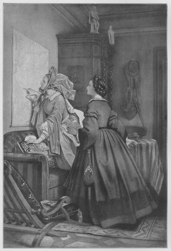 Keywords: Jahrhundertausstellung 1906 KatNr. 1614.jpg Artwork Creator Moritz von Schwind Im Hause des Künstlers Der Besuch Oil Canvas cm 71 51 Neue Pinakothek München lt Quelle Vorstand der Deutschen Jahrhundertausstellung Herausgeber žKatalog zur Ausstellung deutscher Kunst aus der Zeit von 1775 “1875 in der Königlichen Nationalgalerie Berlin Verlag F Bruckmann AG München 1906 2 Bände ; self scanned from own book 1860 PD-old-70-1923 Other versions Moritz von Schwind Jahrhundertausstellung deutscher Kunst 1906 ImageNote 1 24 16 1583 2386 1644 2422 2 Hellgrüne Wände hellbraunes Parkett mit dunkelbraunen Einlagen Braune Möbel Das Sofa mit mattem erdbeerroten Bezug Die Tischdecke in matten türkischen Farben Das Kleid der ersten Dame in gedämpftem Blau mit Schwarz das der anderen die die weiße Landkarte studiert in einem an Rohseide erinnernden Hellbraun Das Futter des Ärmels und die Hutbänder erdbeerrosa die Schärpe weißliches Violett “ 1860 ImageNoteEnd 1 |