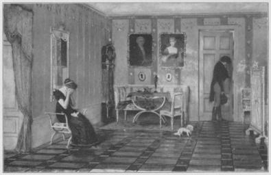 Keywords: Jahrhundertausstellung 1906 KatNr. 1636b.jpg Artwork Creator Franz Skarbina Sonnenuntergang Interieur Oil Canvas cm 83 133 Professor Franz Skarbina Berlin lt Quelle Vorstand der Deutschen Jahrhundertausstellung Herausgeber žKatalog zur Ausstellung deutscher Kunst aus der Zeit von 1775 “1875 in der Königlichen Nationalgalerie Berlin Verlag F Bruckmann AG München 1906 2 Bände ; self scanned from own book 1876 PD-old-70-1923 Other versions Franz Skarbina Jahrhundertausstellung deutscher Kunst 1906 ImageNote 1 16 11 1741 1119 1774 1150 2 Gelbgrüne Wände mit grauen Streifen und rosa und grauen Girlanden dekoriert Weißgraue mit grüngestreiftem und mit roten Blumen geschmücktem Stoff bezogene Möbel Mahagonibrauner Fußboden mit gelblichen Reflexen Der Herr in dunkelblauem Frack und grauen Hosen die Dame in Schwarz “ Bez unten rechts orangerot F Skarbina “ 1876 ImageNoteEnd 1 |