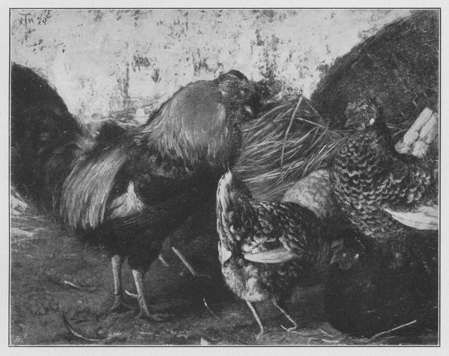 Keywords: Jahrhundertausstellung 1906 KatNr. 1753.jpg Artwork Creator Hans Thoma Hahn und Hühner Oil Canvas cm 56 73 Simon Ravenstein Frankfurt a M lt Quelle Vorstand der Deutschen Jahrhundertausstellung Herausgeber žKatalog zur Ausstellung deutscher Kunst aus der Zeit von 1775 “1875 in der Königlichen Nationalgalerie Berlin Verlag F Bruckmann AG München 1906 2 Bände ; self scanned from own book 1870 PD-old-70-1923 Other versions Hans Thoma in Jahrhundertausstellung deutscher Kunst 1906 Jahrhundertausstellung deutscher Kunst 1906 ImageNote 1 23 19 1183 927 1228 974 2 Die Hühner grau und schwarz gefleckt das liegende schwarz Der Hahn fuchsbraun und blaue Brust Der Hintergrund kittartiges dunkelgeflecktes Grau gespachtelt “ Bez oben links Monogramm H T 70 Thoma-Werk Bd I Nr 6 ImageNoteEnd 1 |