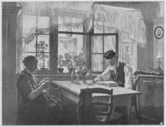 Keywords: Jahrhundertausstellung 1906 KatNr. 1766.jpg Artwork Creator Hans Thoma Sonntagsfrieden Oil Canvas cm 78 107 Kunsthalle Hamburg lt Quelle Vorstand der Deutschen Jahrhundertausstellung Herausgeber žKatalog zur Ausstellung deutscher Kunst aus der Zeit von 1775 “1875 in der Königlichen Nationalgalerie Berlin Verlag F Bruckmann AG München 1906 2 Bände ; self scanned from own book 1876 PD-old-70-1923 Other versions Hans Thoma in Jahrhundertausstellung deutscher Kunst 1906 Jahrhundertausstellung deutscher Kunst 1906 ImageNote 1 12 14 1539 1169 1571 1205 2 Die Wände des Zimmers gelbbraun Der Tisch gelb mit grauer Platte Diese Kombination wiederholt sich im hellbraunen Dach und dem grauen Hinterhaus und bildet den Hintergrund für das klare Grün und das leuchtende Rot der Pflanzen Hellblauer Himmel Das dunklere Rot des Blumenbuketts kommt in dem Tuch das über dem Stuhl hängt wieder Der Stuhl dunkelstes Braun Die Weste und die Kappe des Mannes schwarz mit reichen hellen Reflexen Der rechte Hemdärmel mit bräunlichen der linke mit bläulichen Schatten Die Gesichter braun mit weißen Lichtern Das der Frau ganz im Schatten mit weißer Lichtkontur Im Schwarz der Bluse der Frau werden die Reflexe rein weiß Den Schoß bedeckt ein amethystlila Stoff Weiße durchsichtige Gardine Die Fransen gehen von Weiß bis zu dunkelstem Braun “ Bez unten links schwarz Monogramm H T 8 1876 Thoma-Werk Bd IV Nr 243 ImageNoteEnd 1 |