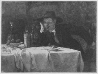 Keywords: Jahrhundertausstellung 1906 KatNr. 1824.jpg Artwork Creator Wilhelm Trübner Trinker am Tisch Oil Canvas cm 27 34 Geheimer Medizinalrat Schultze Bonn lt Quelle Vorstand der Deutschen Jahrhundertausstellung Herausgeber žKatalog zur Ausstellung deutscher Kunst aus der Zeit von 1775 “1875 in der Königlichen Nationalgalerie Berlin Verlag F Bruckmann AG München 1906 2 Bände ; self scanned from own book 1872 PD-old-70-1923 Other versions Wilhelm Trübner in Jahrhundertausstellung deutscher Kunst 1906 Jahrhundertausstellung deutscher Kunst 1906 ImageNote 1 9 9 952 714 968 734 2 Weißes Tischtuch mit grauen Schatten Braunumwickelte Flaschen vorwiegend braune Früchte darunter ein isoliertes Rot Der Trinker im Schatten schwarzer Rock dunkelgraue Weste Rötliches Fleisch mit dunkelgrauen Schatten Schwarzer Hut Olivener Hintergrund mit braunen Ornamenten “ Bez oben links schwarz W Trübner 12 1872 “ Rom ImageNoteEnd 1 |