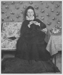 Keywords: Jahrhundertausstellung 1906 KatNr. 1838.jpg Artwork Creator Wilhelm Trübner Auf dem Kanapee Oil Canvas cm 52 45 Nationalgalerie Berlin lt Quelle Vorstand der Deutschen Jahrhundertausstellung Herausgeber žKatalog zur Ausstellung deutscher Kunst aus der Zeit von 1775 “1875 in der Königlichen Nationalgalerie Berlin Verlag F Bruckmann AG München 1906 2 Bände ; self scanned from own book 1872 PD-old-70-1923 Other versions Wilhelm Trübner in Jahrhundertausstellung deutscher Kunst 1906 Jahrhundertausstellung deutscher Kunst 1906 ImageNote 1 26 23 1838 2199 1891 2248 2 Schwarzes Kleid Rosa Fleisch Augen und Haare braun über dem braunen Kanapee zeigt rosa und erdbeerrote Blüten mit schmutziggrünen Blättern auf weißem in den Falten grauem Grund Die Tischdecke erdbeerrosa und rote Karos Gelbe weiße und violette Blumen Teppich dunkelbraunrot mit verschwimmenden schwarzen Ornamenten Fußboden hellbraun Tapete grau mit dunkel- und weißblauen Ornamenten “ Bez oben links schwarz W Trübner 4 1872 ImageNoteEnd 1 |