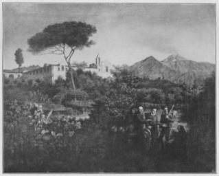 Keywords: Jahrhundertausstellung 1906 KatNr. 1855c.jpg author Italienische Landschaft mit einem Kloster und einer Gruppe von Mönchen und Wanderern Wilhelm und Rudolf Schadow 1810 in einem Klostergarten der Franziskaner bei Neapel im Gespräch mit dem Mönch Mastai Ferretti nachmaligem Papst Pius IX Oil Canvas cm 82 5 103 Nationalgalerie Berlin lt Quelle Vorstand der Deutschen Jahrhundertausstellung Herausgeber žKatalog zur Ausstellung deutscher Kunst aus der Zeit von 1775 “1875 in der Königlichen Nationalgalerie Berlin Verlag F Bruckmann AG München 1906 2 Bände ; self scanned from own book PD-old-70-1923 Other versions ImageNote 1 10 14 1494 1190 1516 1216 2 Das bräunliche Grün spielt nach Olive Das Kloster in bräunlichem Gelbweiß Graues Gebirge Der Himmel aus gebräuntem Blau Auf der Rückseite Angabe der Namen der Dargestellten “ Angeblich von J F W Schirmer ImageNoteEnd 1 Unknown painters from Germany Jahrhundertausstellung deutscher Kunst 1906 Friedrich Wilhelm von Schadow Rudolf Schadow Paintings of Pius IX |