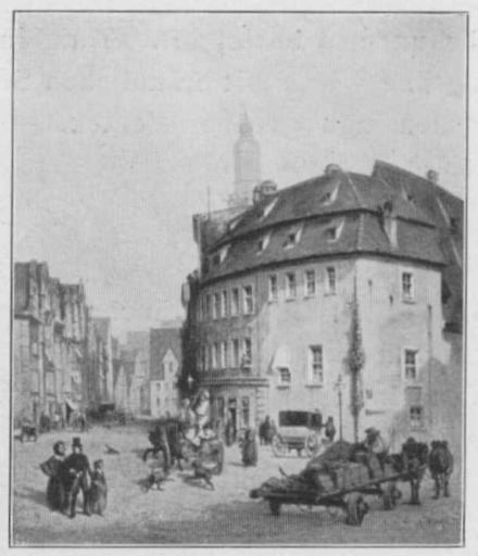 Keywords: Jahrhundertausstellung 1906 KatNr. 2010.jpg Oil Canvas cm 29 24 Schlesisches Museum der bildenden Künste Breslau lt Quelle Vorstand der Deutschen Jahrhundertausstellung Herausgeber žKatalog zur Ausstellung deutscher Kunst aus der Zeit von 1775 “1875 in der Königlichen Nationalgalerie Berlin Verlag F Bruckmann AG München 1906 2 Bände ; self scanned from own book 1857 PD-old-100 Other versions ImageNote 1 12 10 583 687 612 712 2 Das Eckhaus in hellstem Milchkaffeeton mit rotbraunem Dach weißen Fenstern grauen Schatten Im Pflaster wird dieser Ton durch Rosa und Braun gemildert Die Staffage im wesentlichen ein Braun das sich lebhaft von dem Platz abhebt Einzelheiten blau rosa weiß etc In den Häusern der Straße wechselt die Farbe des Platzes mit grünlichgrauen und verwandten Tönen Die Farbe der Dächer geht mehr nach Rosa Hellblauer Himmel mit weißen Wolken “ Bez unten rechts braun A Wölfl 57 ImageNoteEnd 1 Adelbert Wölfl Jahrhundertausstellung deutscher Kunst 1906 |